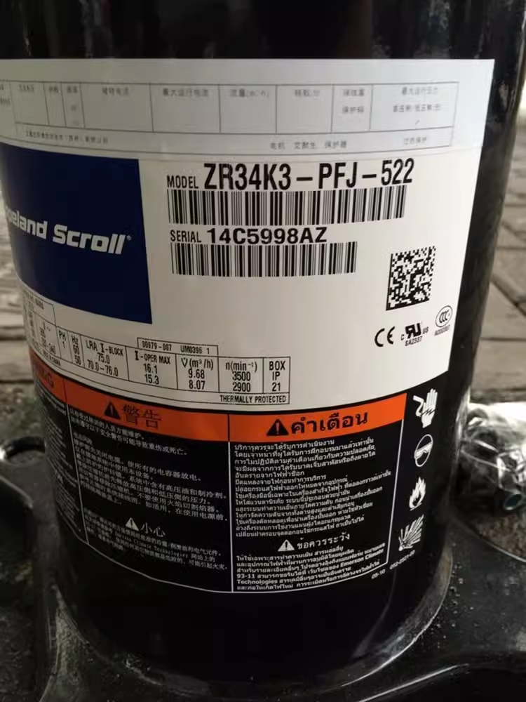 Built for durable and quiet operation, the ZR34KH-TFD scroll compressor is widely used in packaged air conditioners, chillers, heat pumps, and cold room systems. Its scroll design offers smooth compression, reduced vibration, and superior reliability compared to traditional reciprocating compressors.